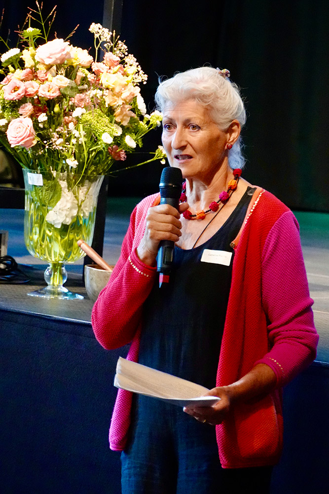Mehr und feiner wahrzunehmen, sei kein Problem und führe auch nicht zu gesundheitlichen oder sozialen Problemen. Eine Aussage, für die er Beifall bekam. Die Frage sei, wie wir mit den Wahrnehmungen umgingen, wie wir sie verarbeiteten und bewerteten. Ganz in die Wahrnehmungen einzutauchen, könne helfen, aus dem Denken und Bewerten auszusteigen. Dem dienten Klänge von Gongs und Klangschalen zum Beispiel, die Klangräume eröffneten ohne bewertende Gedanken, weder Vergangenheit, noch Zukuft – ganz Jetzt.